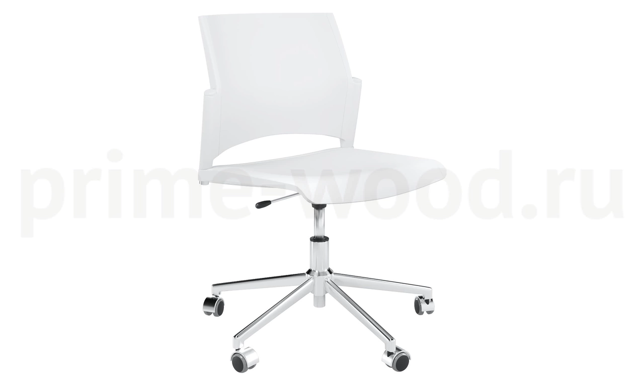 Каркас — хромированный. Сиденье - пластик, спинка - пластик. База - стальная хромированная d=600 мм, колеса - d=50 мм, с хромированным лепестком.