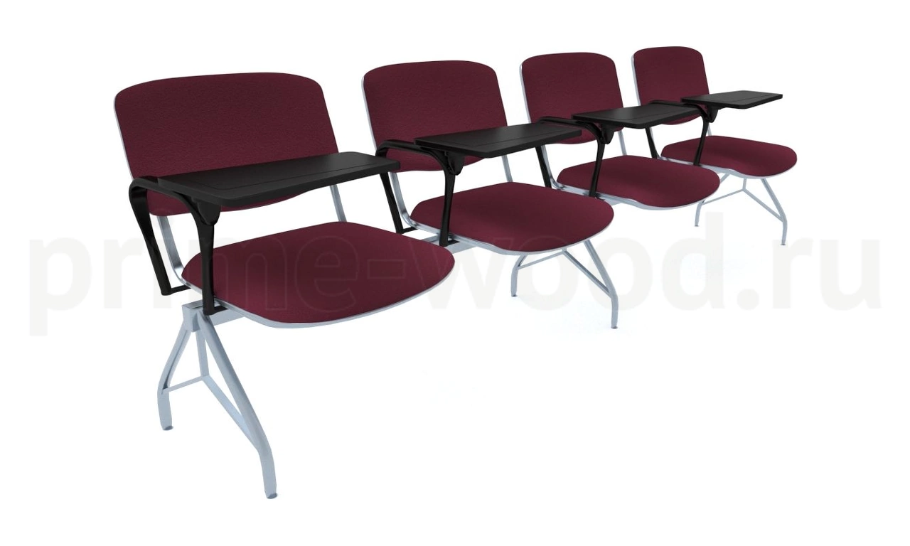 мод.СМ 85/2-04 с дополнительной стойкой металлический каркас – труба 60х60, Ø30, труба плоско-овальная 30х15 4 подлокотника ISO (правых), 4 пюпитра. Цвет металлокаркаса - черный.