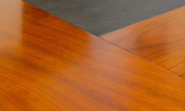 По рекомендации менеджера, работающего над проектом, заказчик обратил внимание на коллекцию Kingston. Мебель из этой коллекции удачно сочетает в себе классический, но не вычурный стиль, отличный конструктив, качественные материалы и демократичную для премиум-класса цену. Дорогая фурнитура, шпон, кожаные накладки на столешницах выгодно отличают её от конкурентов.
