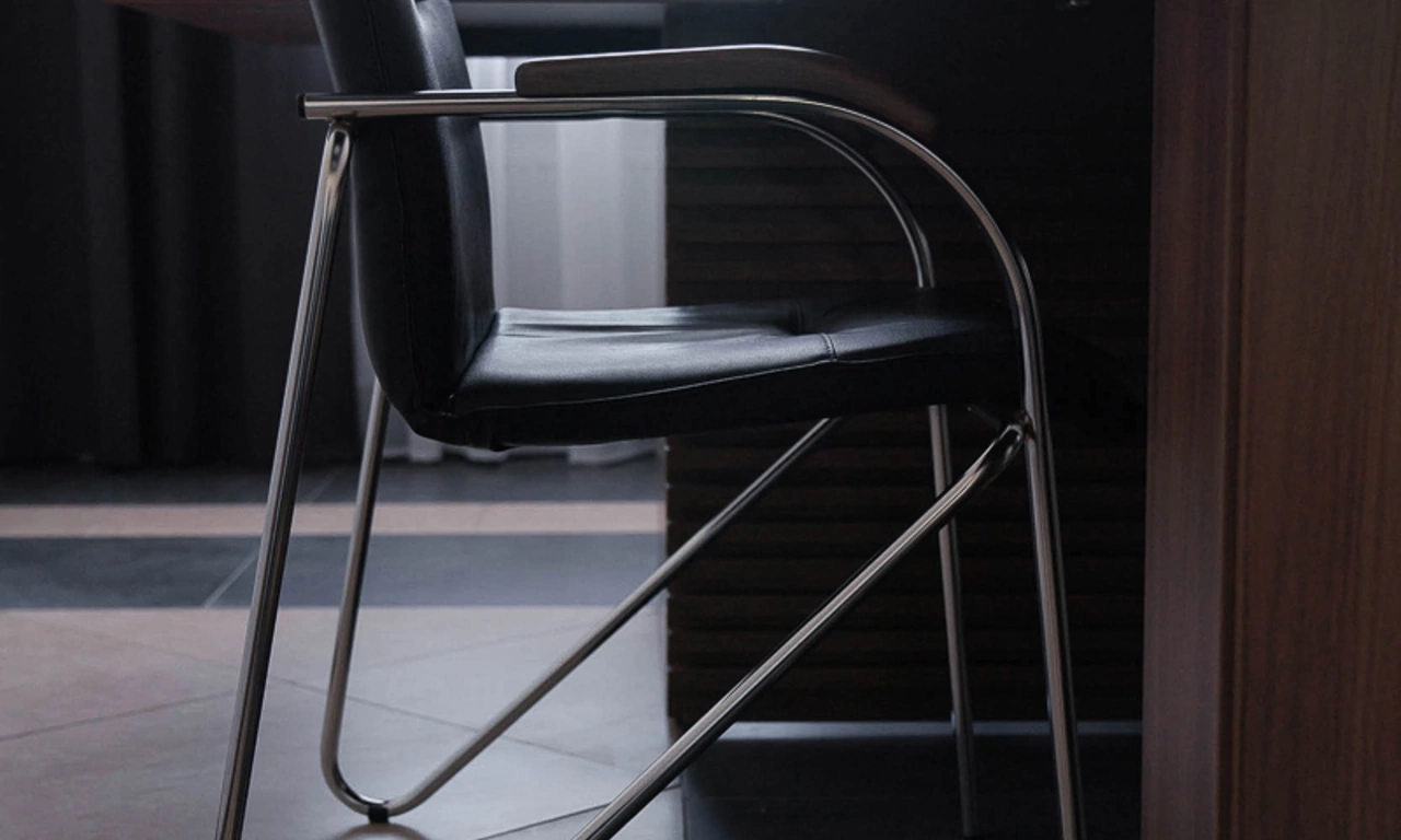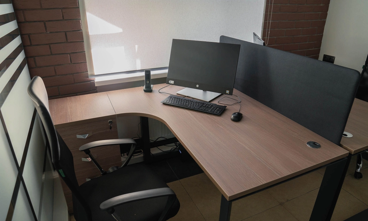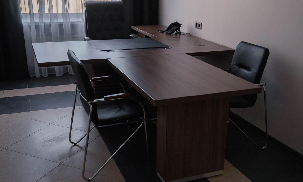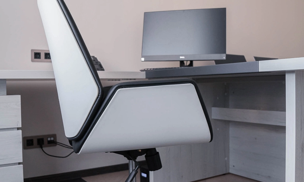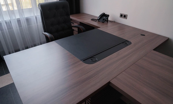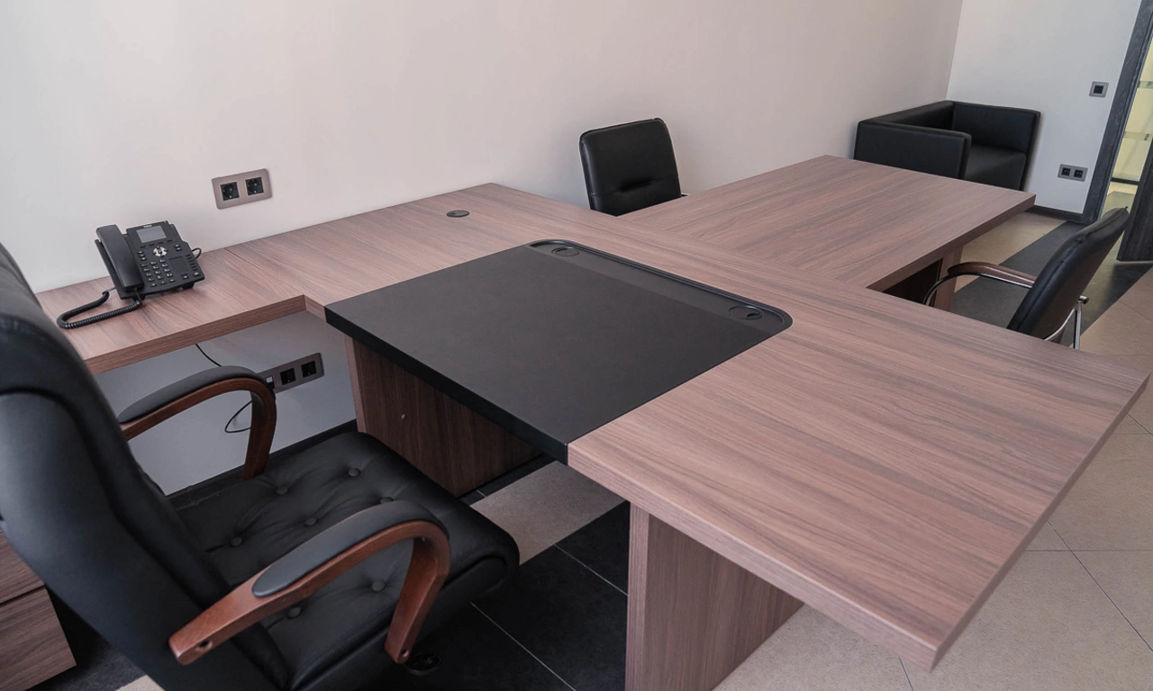 Для более консервативного коллеги из соседнего кабинета отлично подошёл тот же Time.S, но в строгом оттенке дерева "палдао" в паре с классическим креслом Royal.