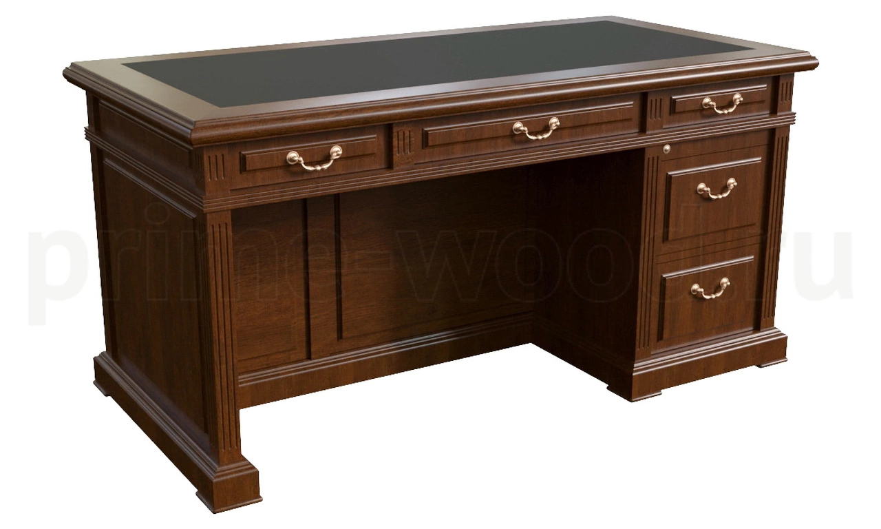 Стол письменный 5 ящиков с кожаными вставками